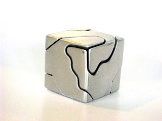 The puzzling aspect has been described by both Kevin and Allard so I would not go into this, except to say that I found it easier to take apart than to put it back together. Overall, despite the few minor shortcomings mentioned above, this is a still a nice looking metal cube and with those curly lines on its sides, makes for an interesting display item.