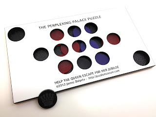 It took me a good part of the evening but eventually I managed to get the Queen to exit from the top left hole. To complete the puzzle, the Queen and her attendants (the rest of the discs) must be returned "to their starting positions". Here I also fumbled a bit before everything was finally back in place. Throughout, a fair amount of dexterity and nimble figures are required. The solution is pretty tricky but quite clever. Here's a tip; play with the PPP under bright white light or during the day if possible....warm or cozy lighting will wreck havoc with the colours of the discs.