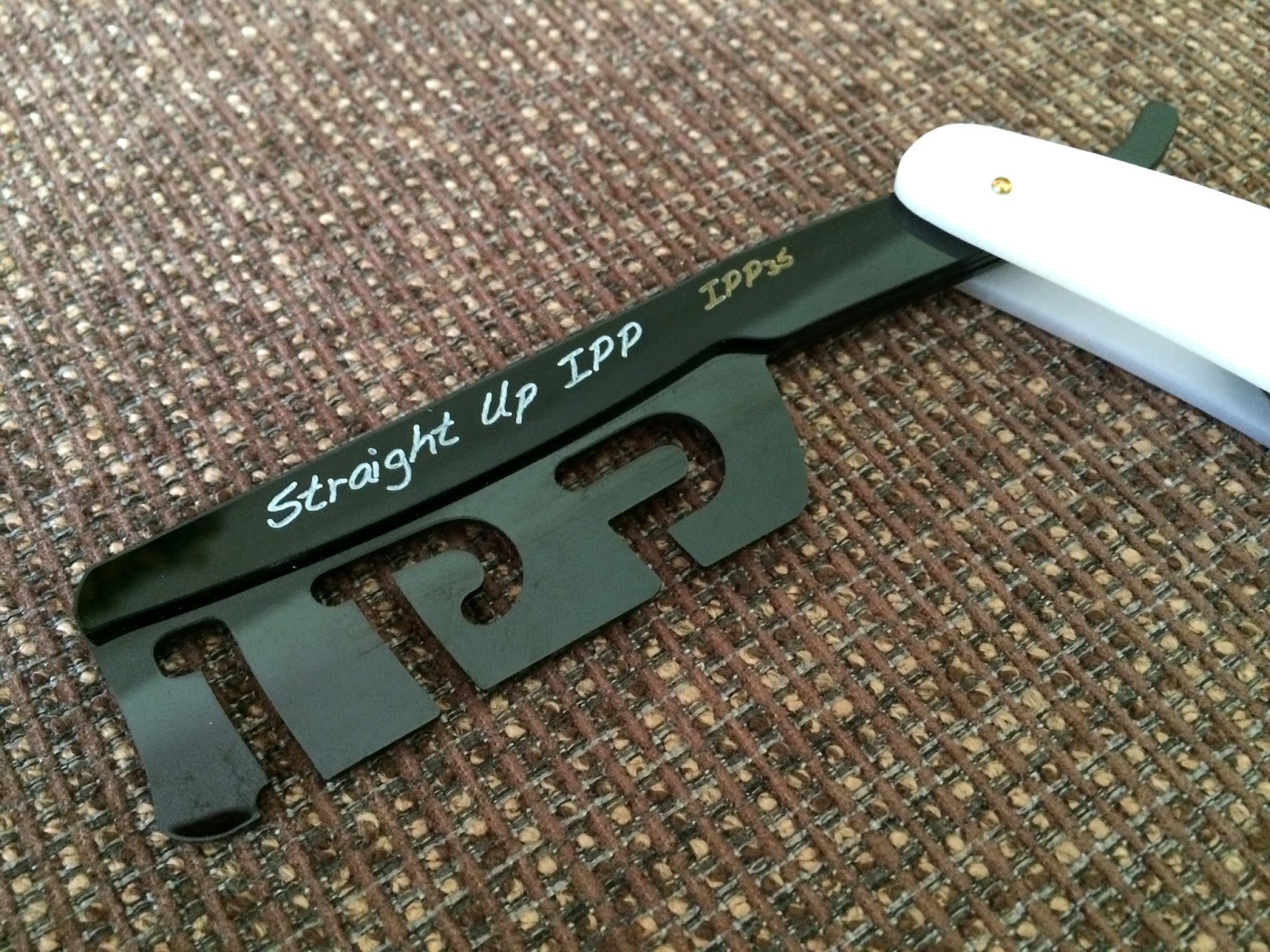 The "Straight Up" looks just like a real traditional shaving razor and comes nicely packaged in an attractive box too. Its made of laser cut acrylic and David has chosen a pearlescent finish for the handle to give it an authentic look. Very nicely made indeed!
