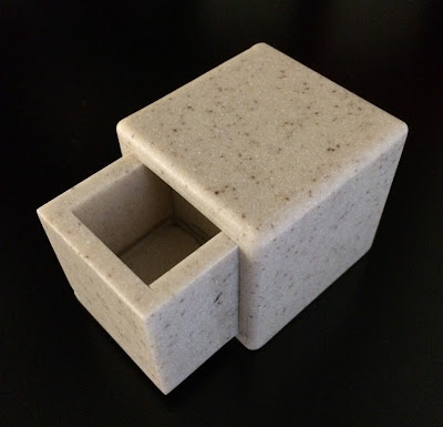 But it is of a different colour this time, a sort of a light beige. And of course the mechanism is different from its predecessor. It measures the same 6.3cm all round and the object is to open the spring loaded drawer. Very well made and high quality.