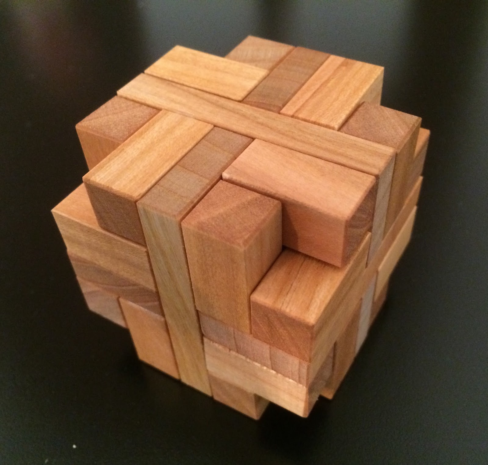 There is only one solution and if you can't find the right pieces to mesh together correctly and in the correct sequence, you'll be going around in circles like I did. To borrow the phrase from one puzzler, the Hexator is confusingly disorientating. While Vinco had deliberately constructed the puzzle to have a symmetrical external pattern of colours on all 6 sides by using darker and lighter woods, I found that this didn't help me much. Thankfully he added the printed solution to the packaging.